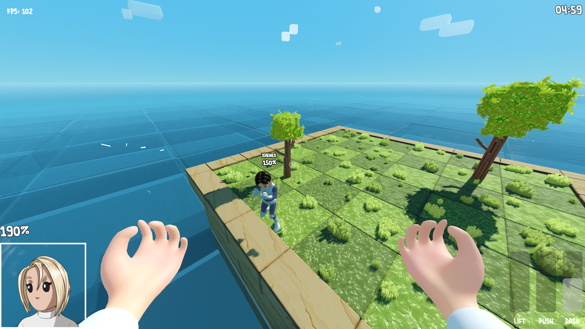 Overboard is an online free-for-all game where players fight to push each other off an island into surrounding water using a fighter of their choice. Each fighter has their own unique set of abilities that can be used to knock opponents off or aid in recovering if thrown off themselves. Last player standing wins the round!